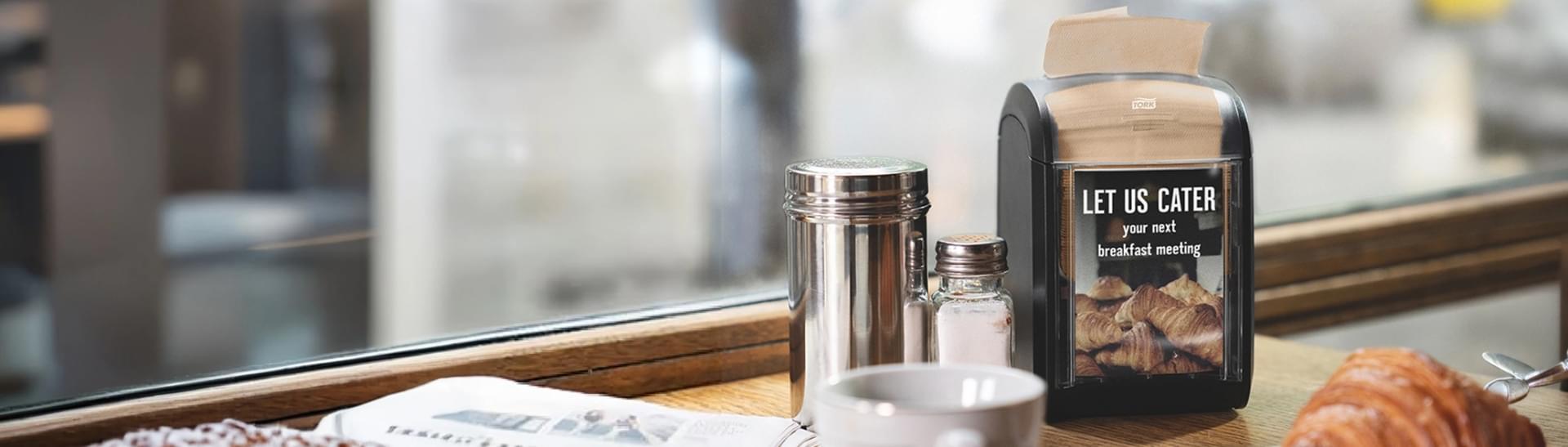 Czy wiesz, że dozowniki Tork Xpressnap® mogą funkcjonować również jako nośnik informacji. Obecne w nich panele reklamowe AD-A-Glance® pozwolą Ci łatwo promować produkty i prowadzić skuteczną komunikację z klientami.