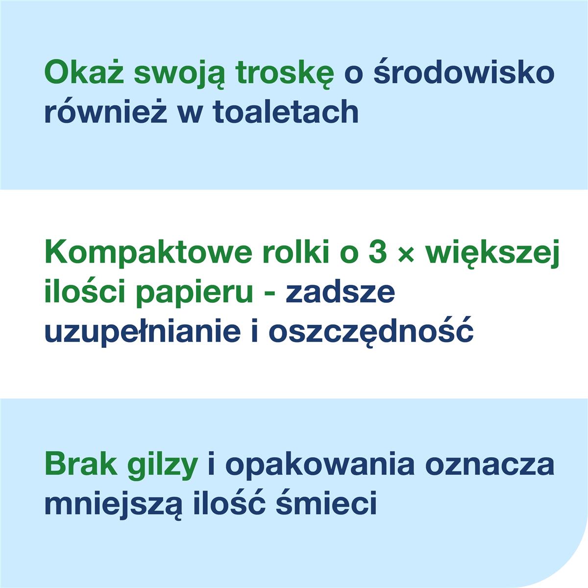 Większa wydajność – kompaktowe rolki zawierają aż 3 razy więcej papieru niż standardowe rozwiązania